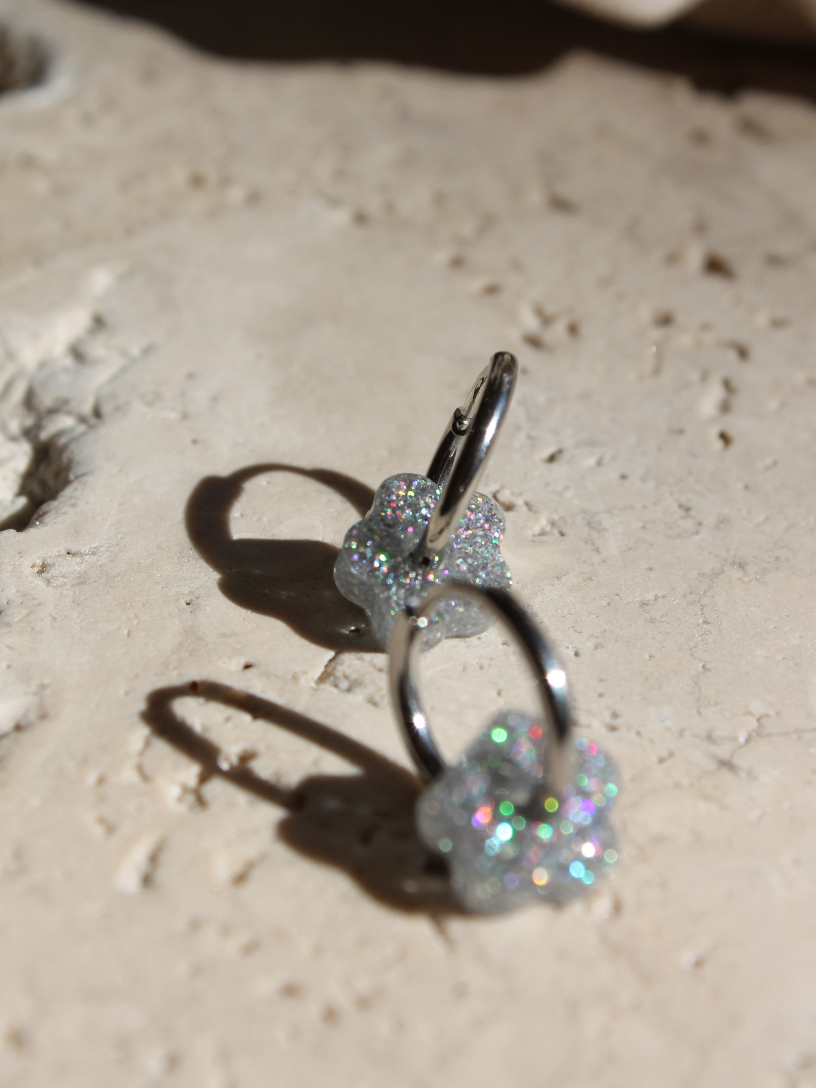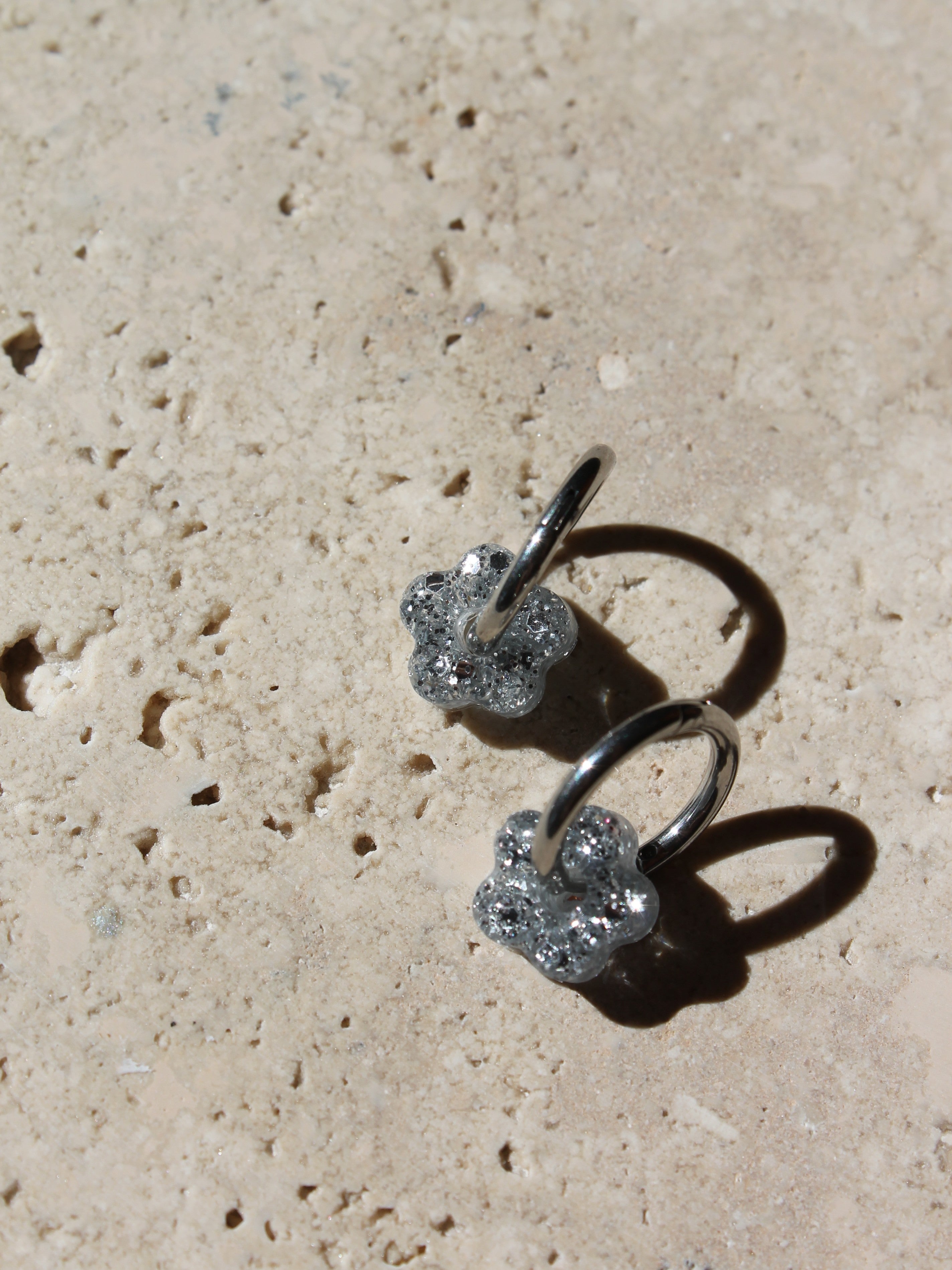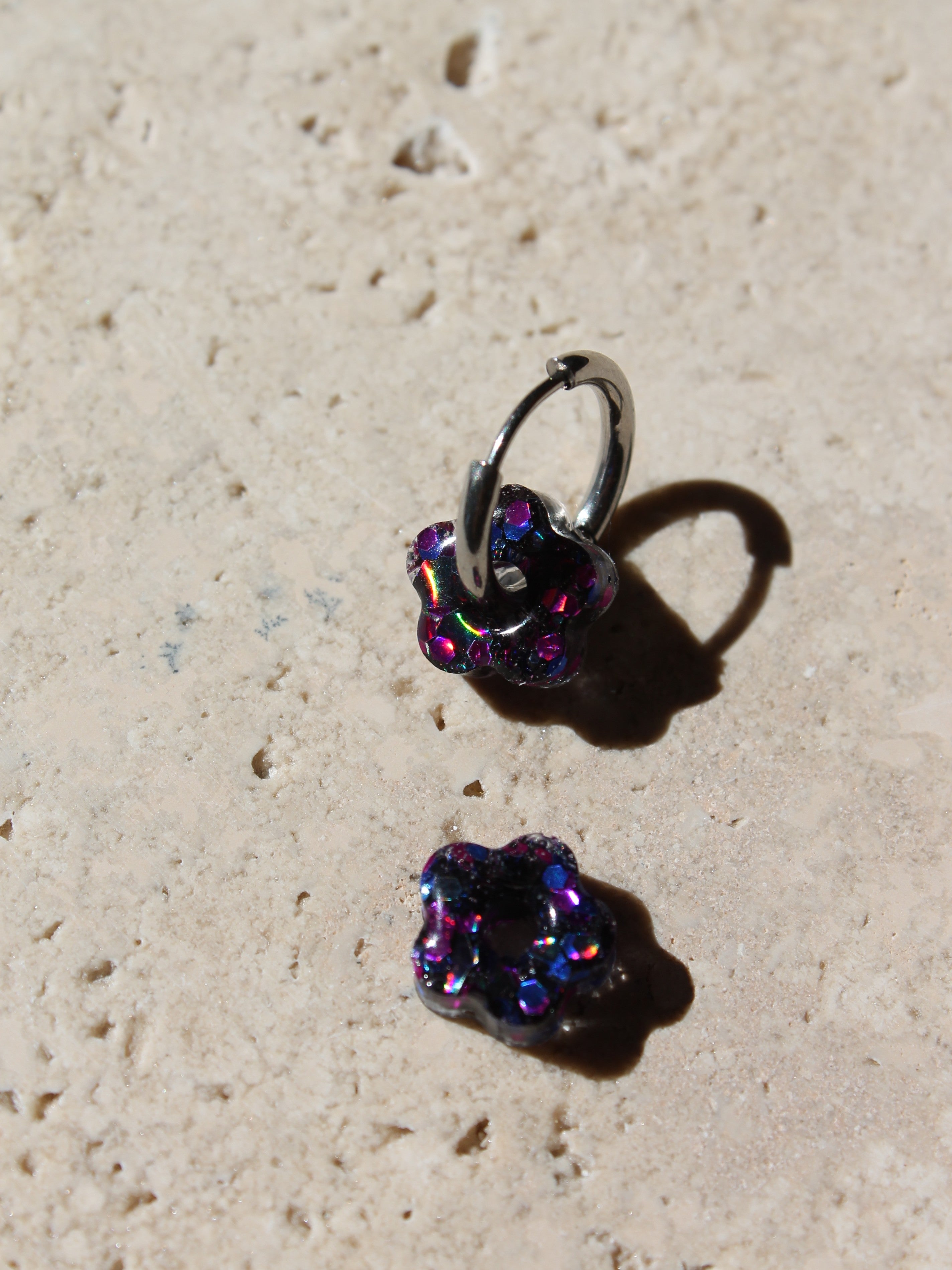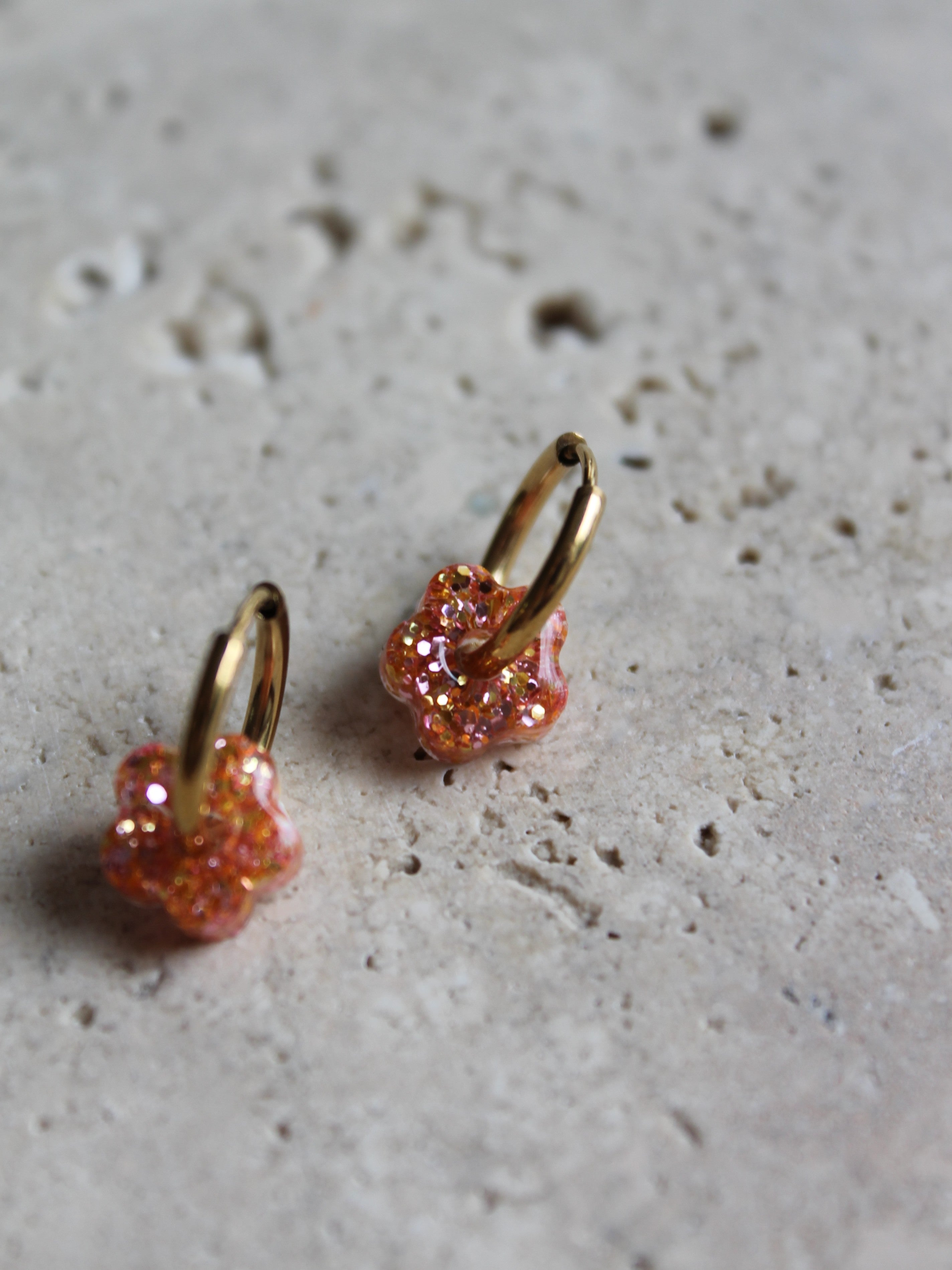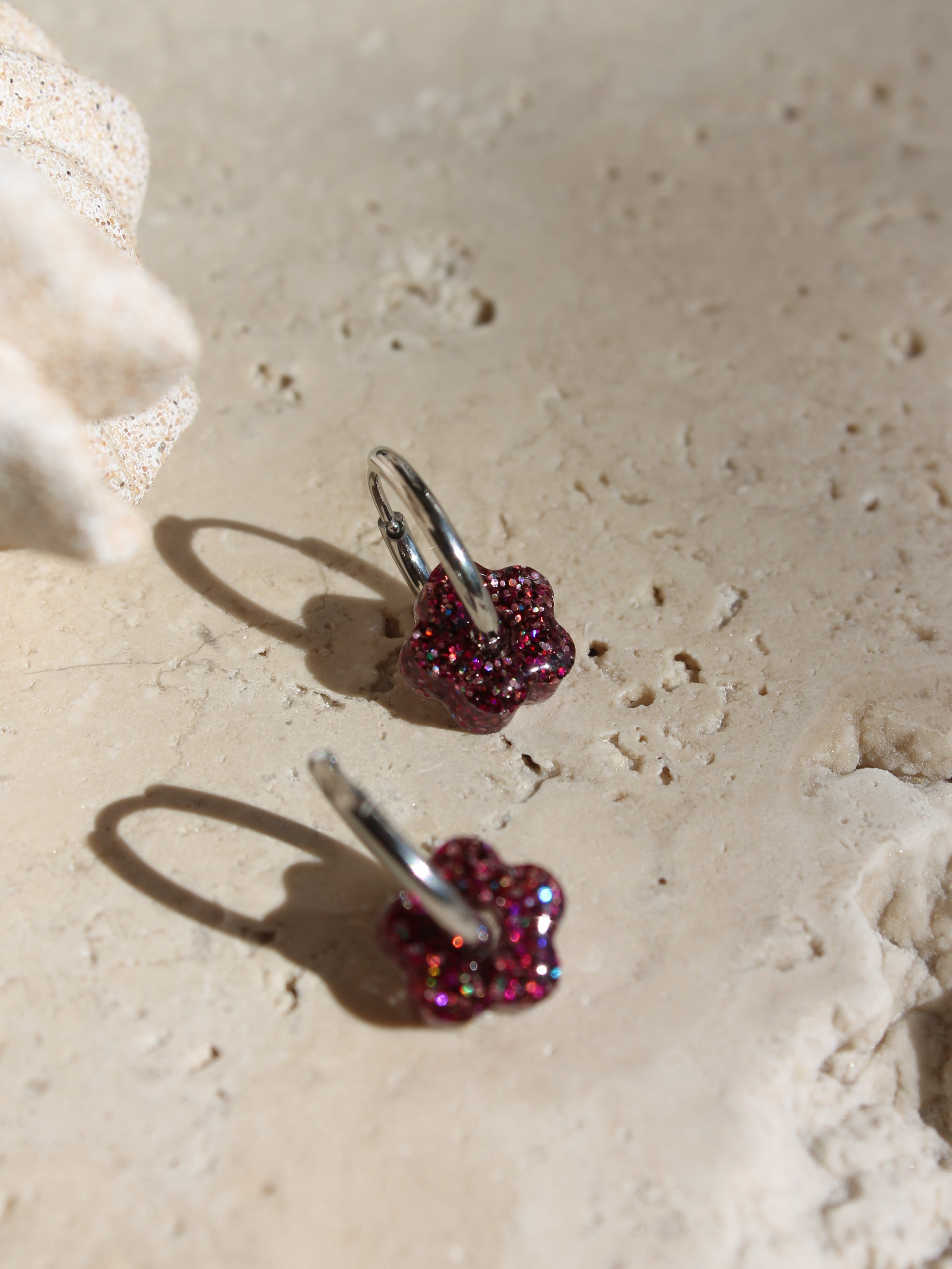 Chaque paire est composée d'une base créole en acier inoxydable (dorée ou argentée), sur laquelle votre enfant peut clipser la fleur de son choix selon son humeur ou sa tenue.