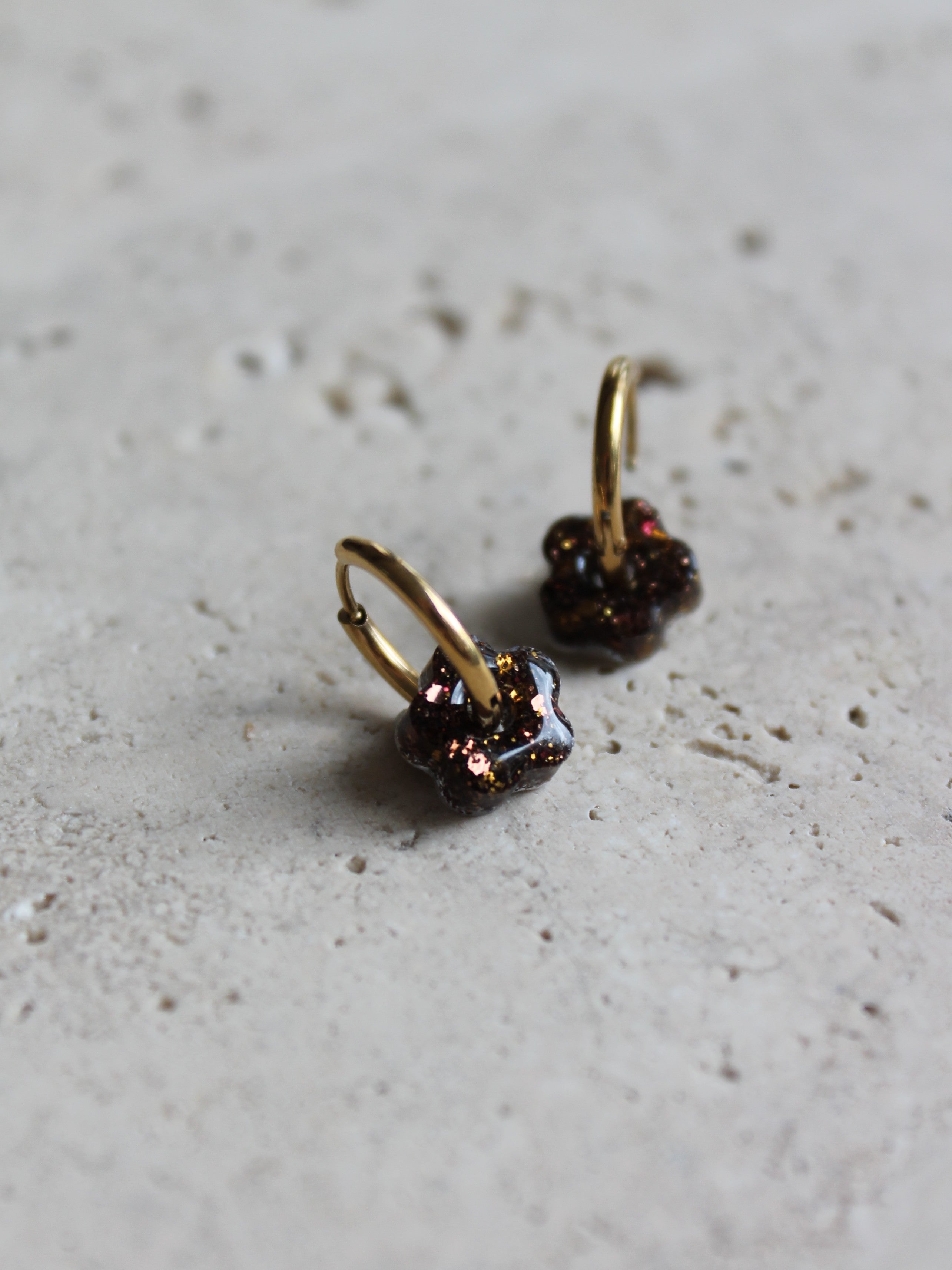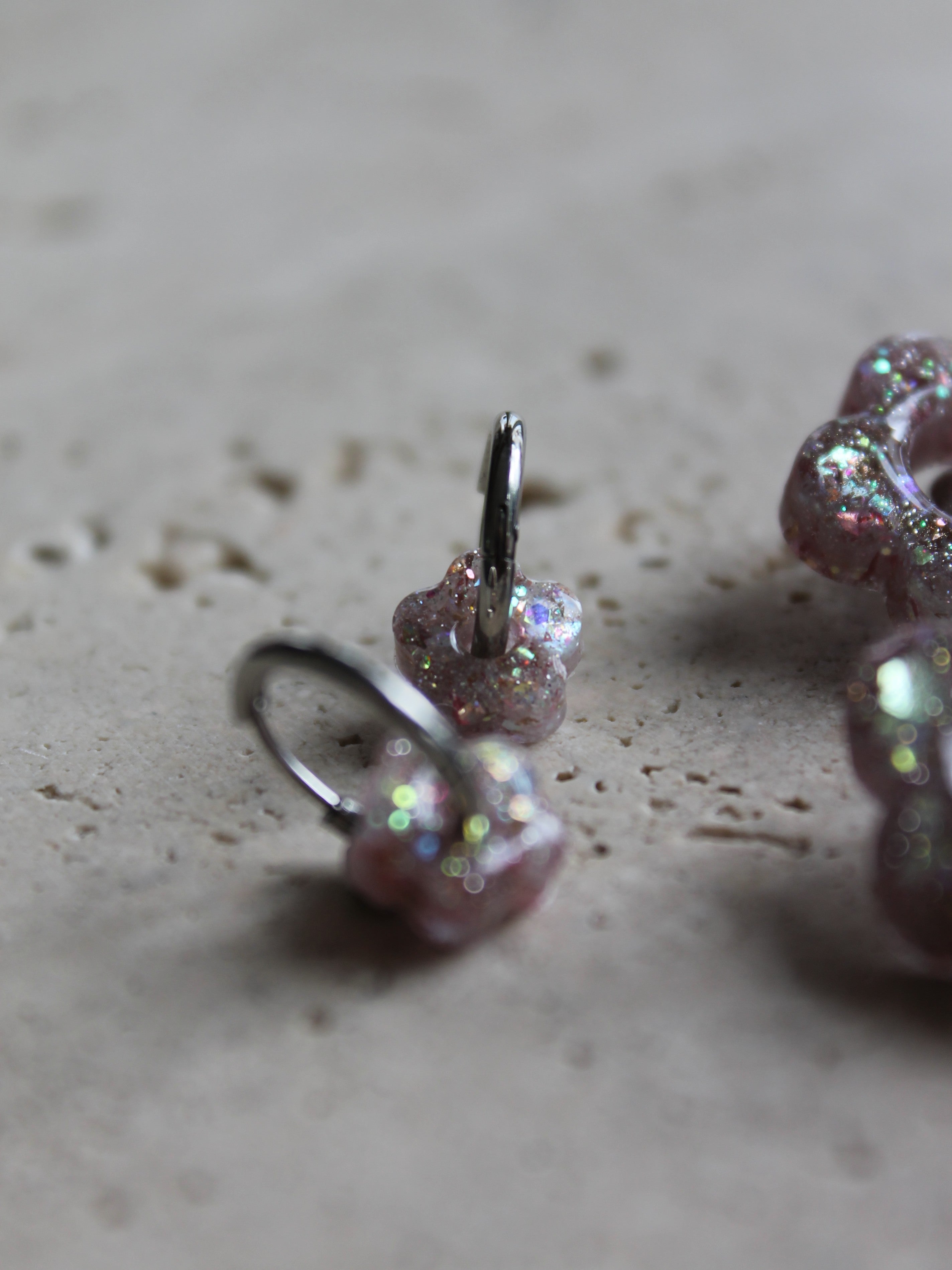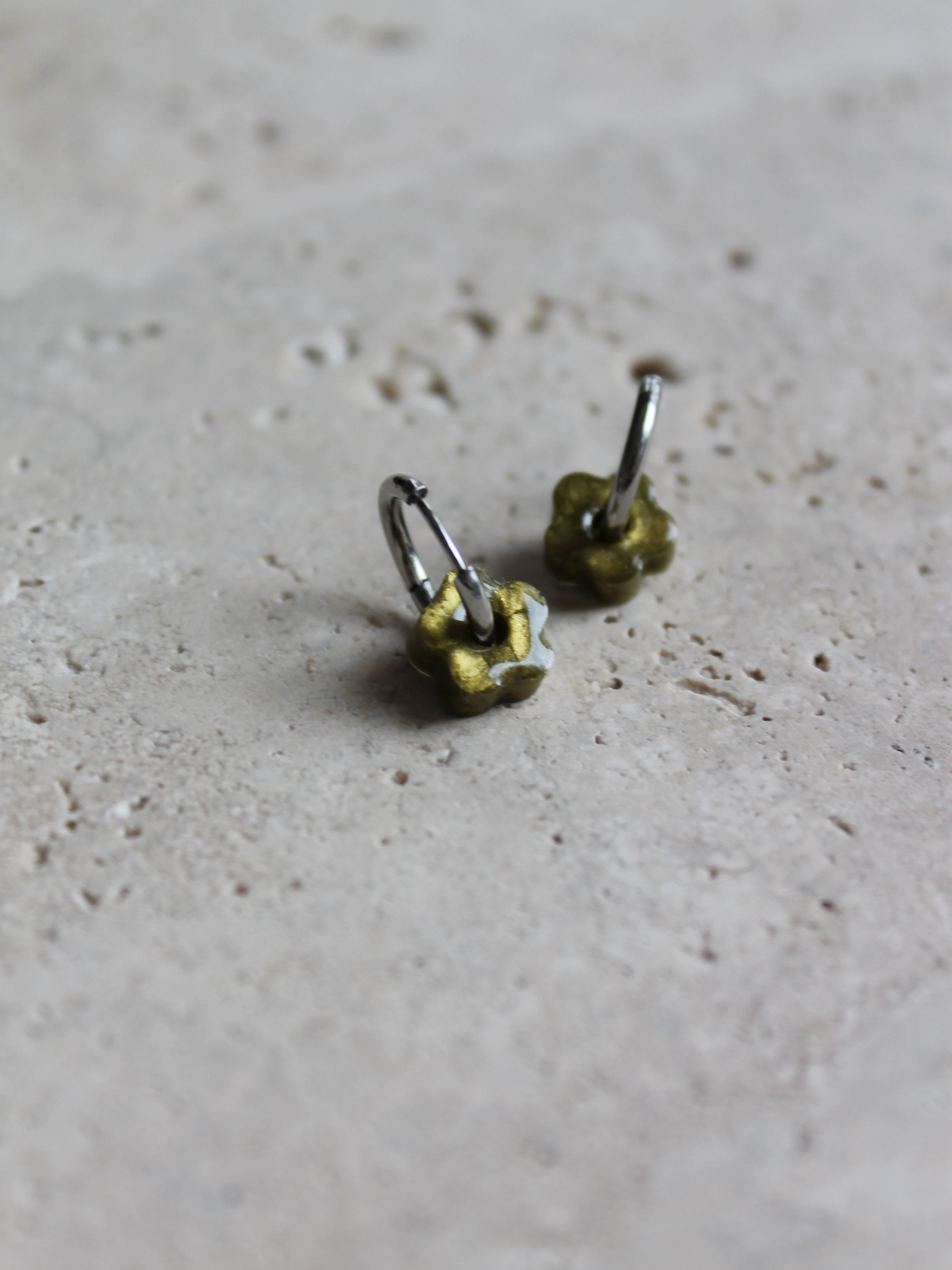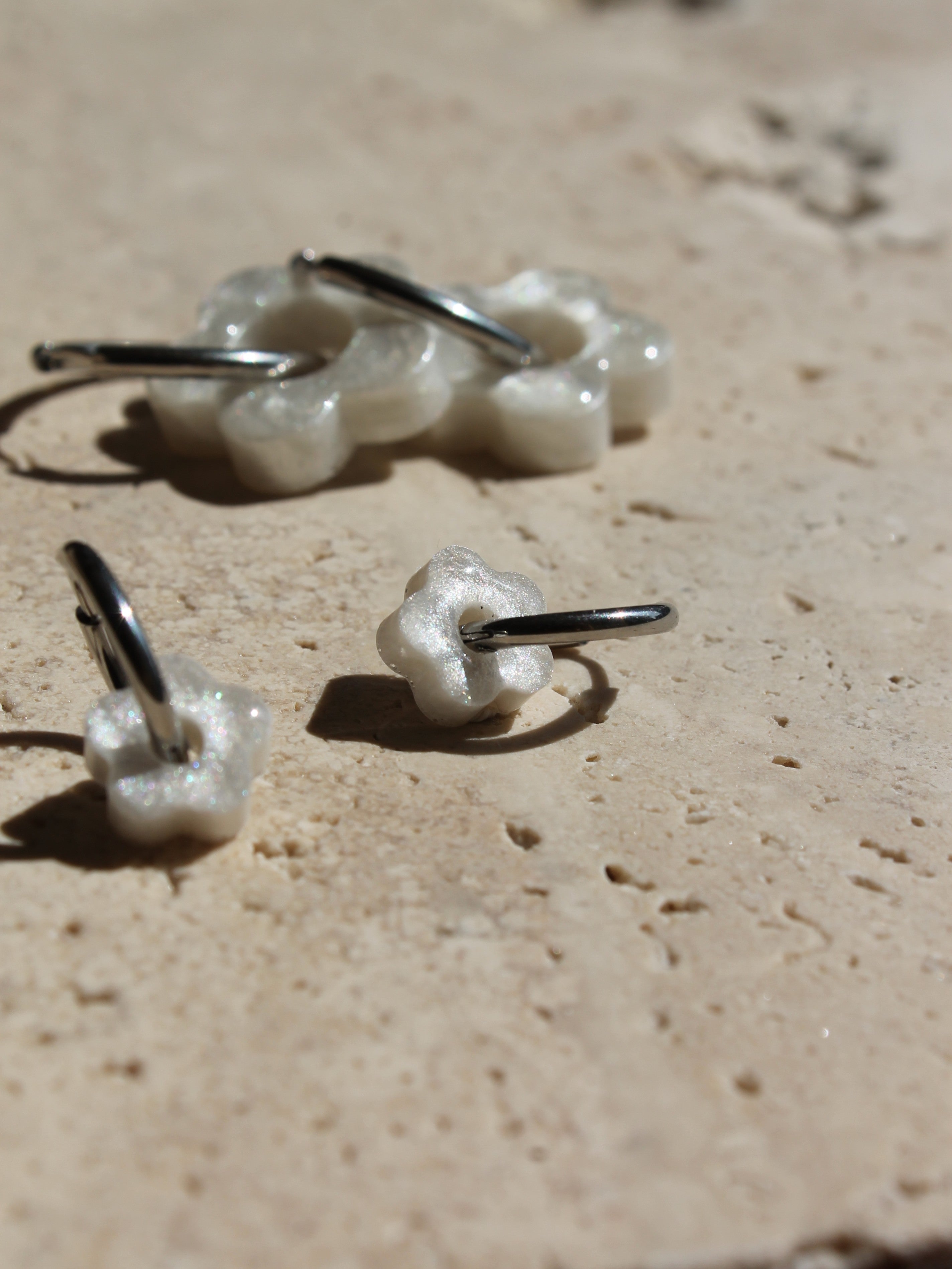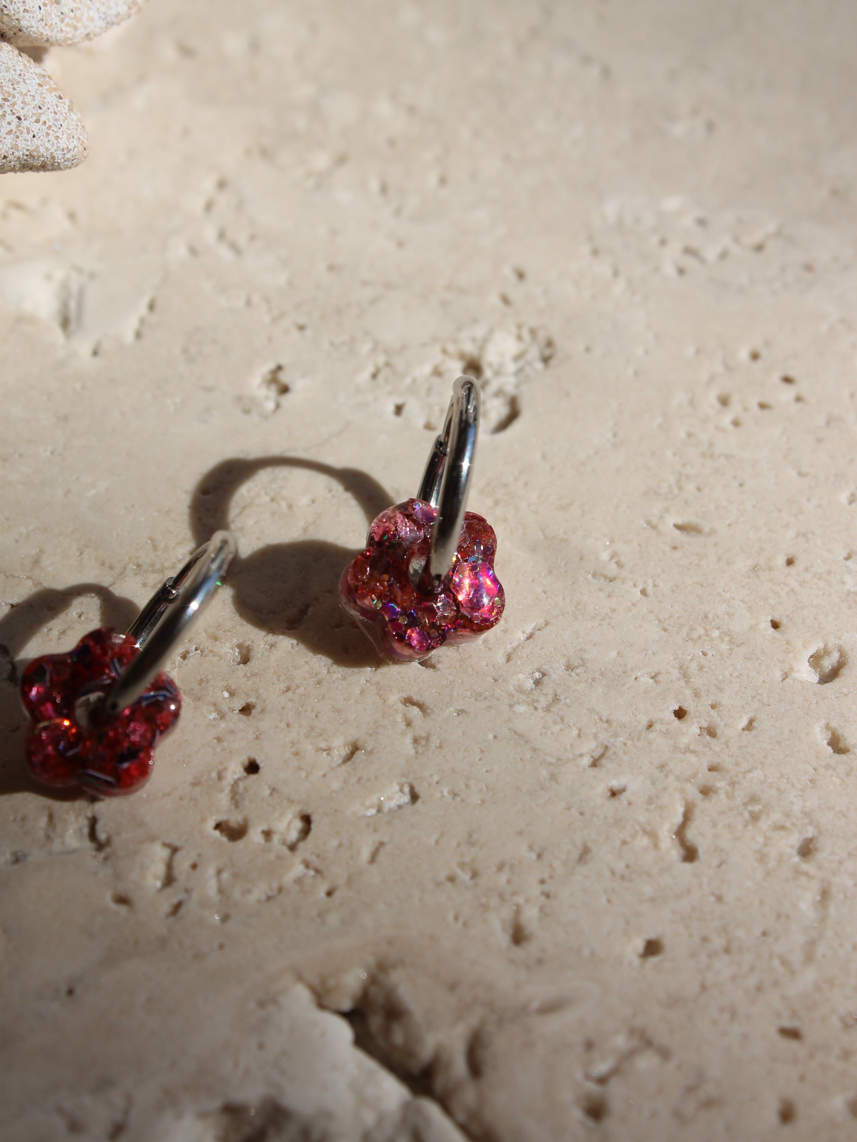Chaque paire est composée d'une base créole en acier inoxydable (dorée ou argentée), sur laquelle votre enfant peut clipser la fleur de son choix selon son humeur ou sa tenue.