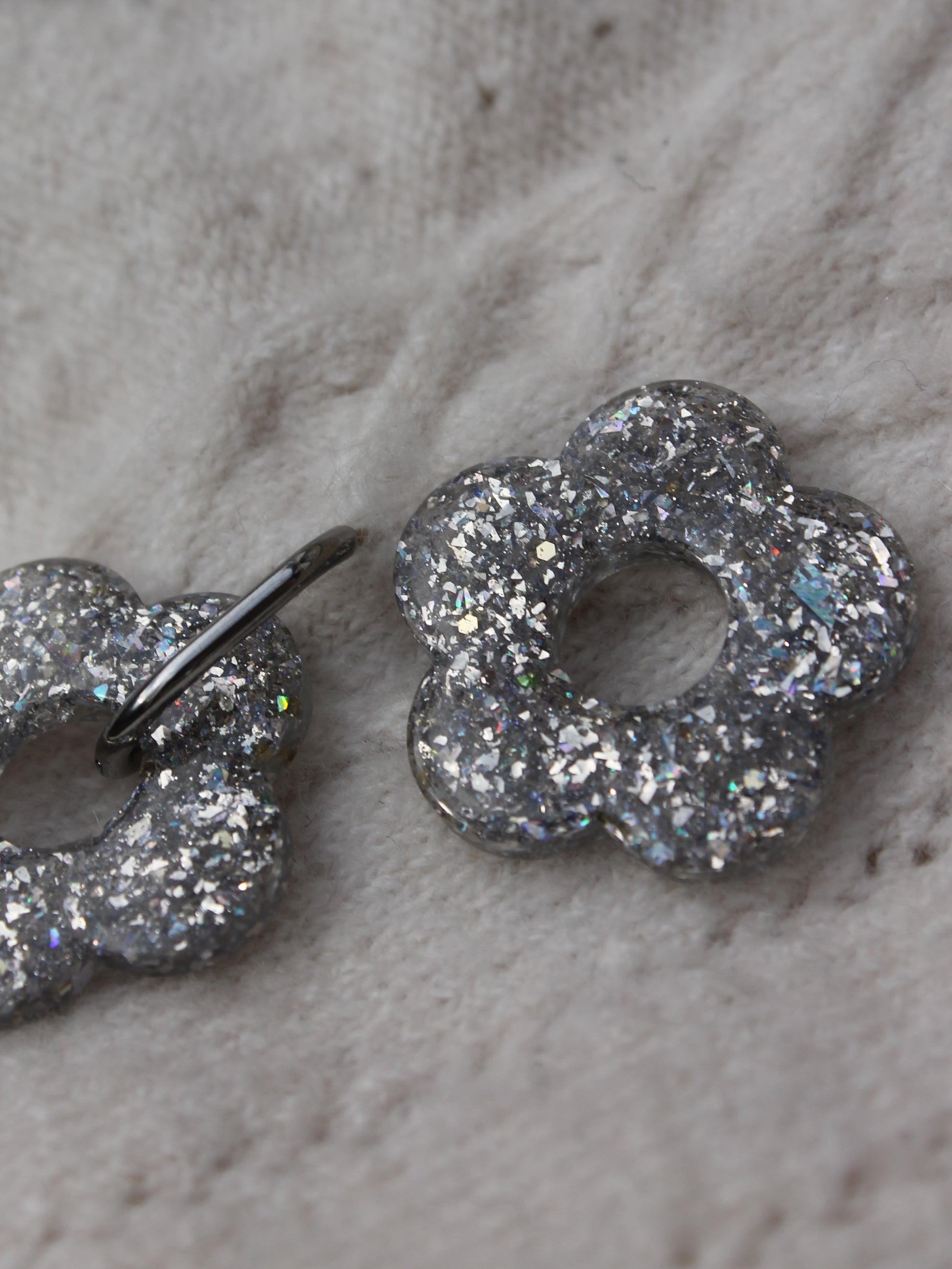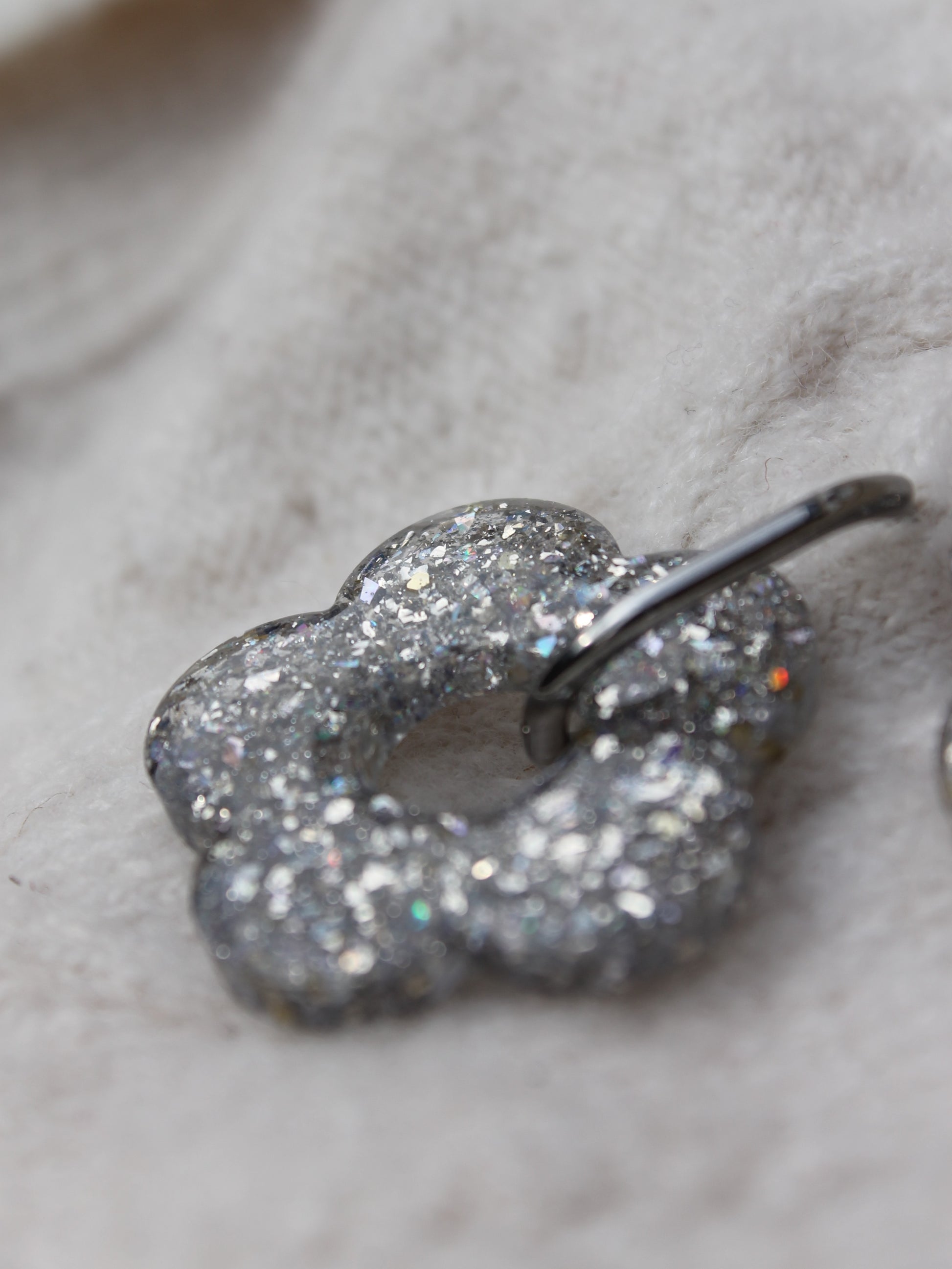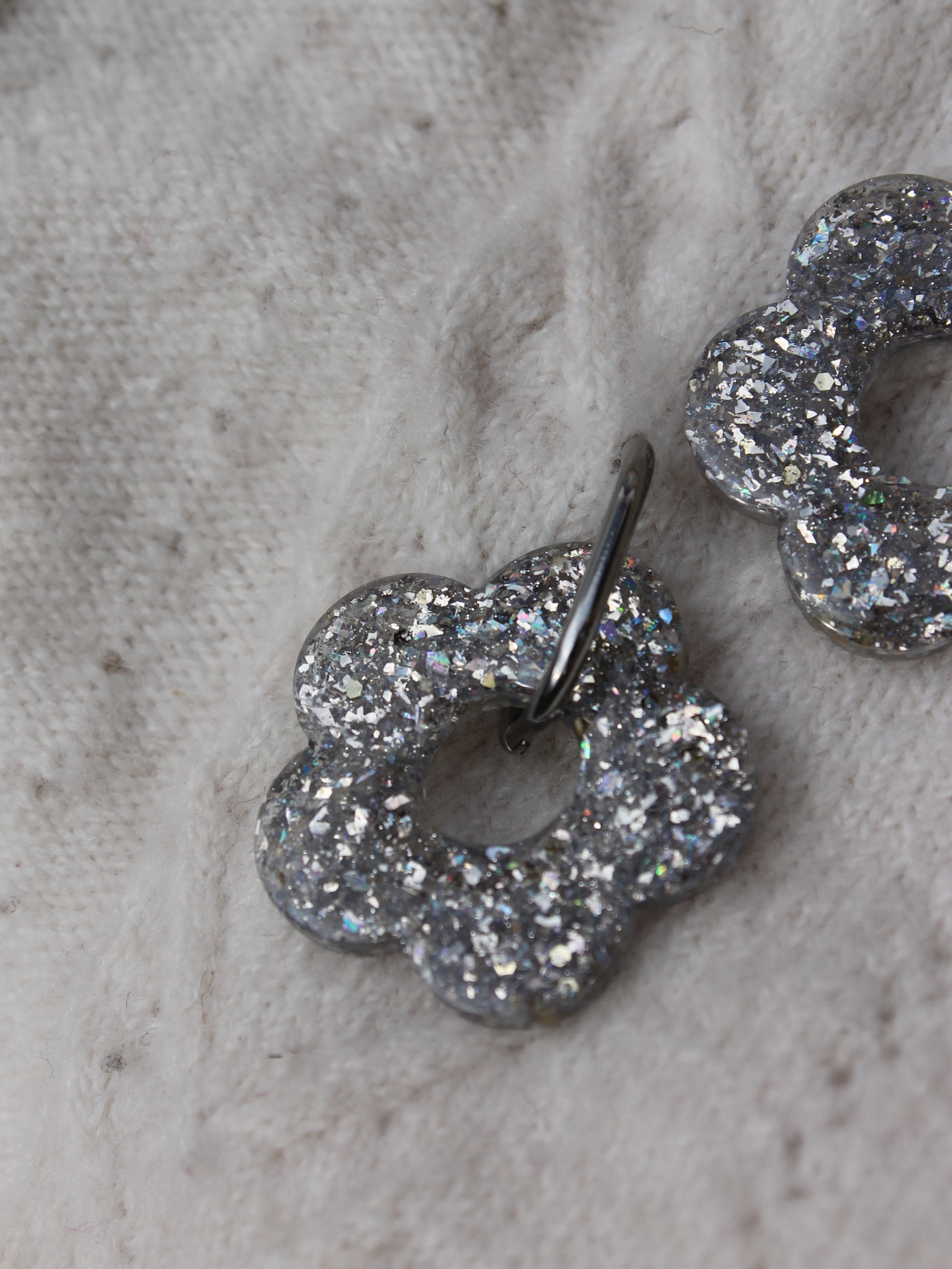 Des créoles fines associées aux pampilles Bloom XL — des fleurs plus grandes et plus affirmées, toujours façonnées à la main.
