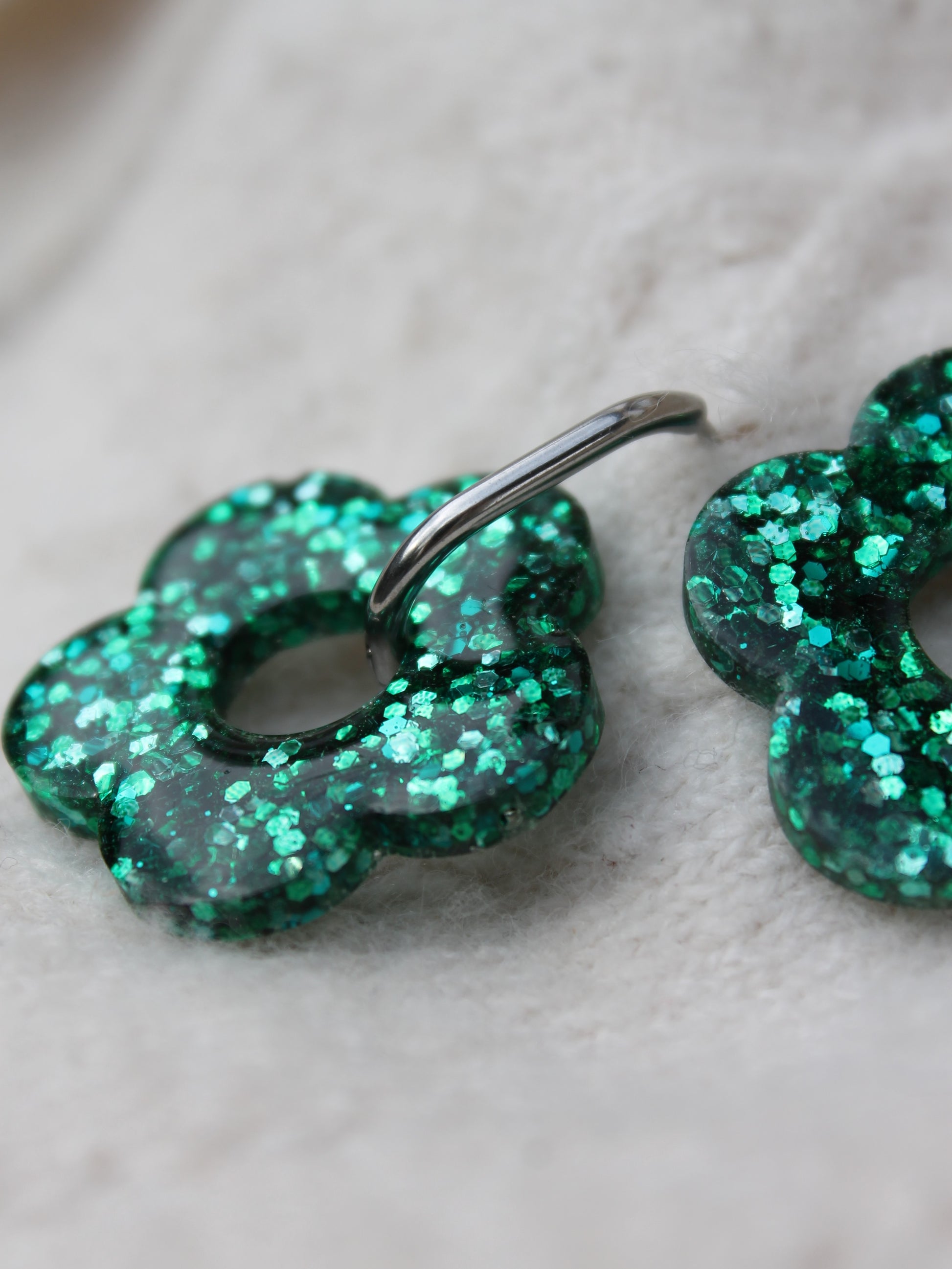 Des créoles fines associées aux pampilles Bloom XL — des fleurs plus grandes et plus affirmées, toujours façonnées à la main.