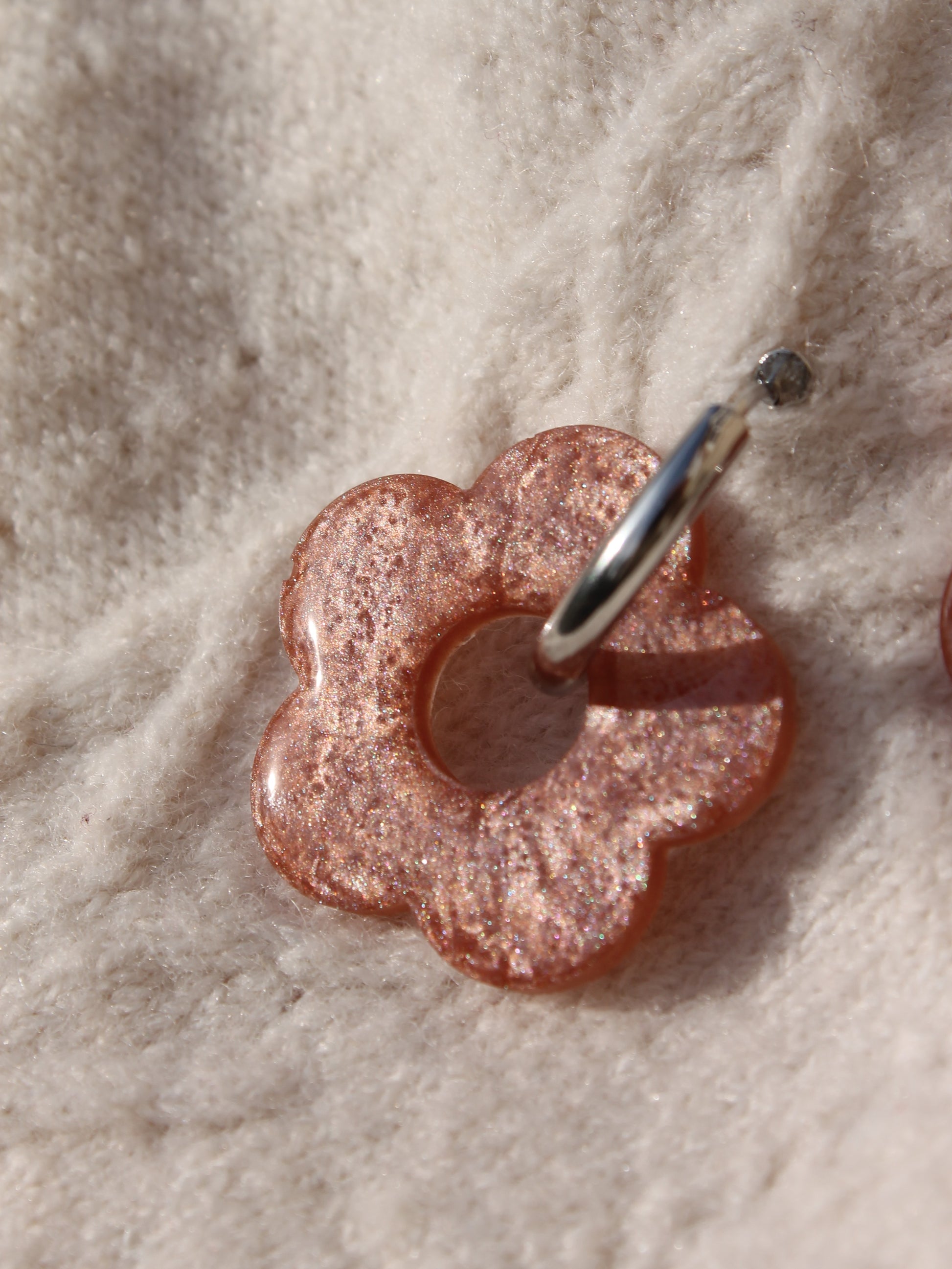 Des créoles fines associées aux pampilles Bloom XL — des fleurs plus grandes et plus affirmées, toujours façonnées à la main.