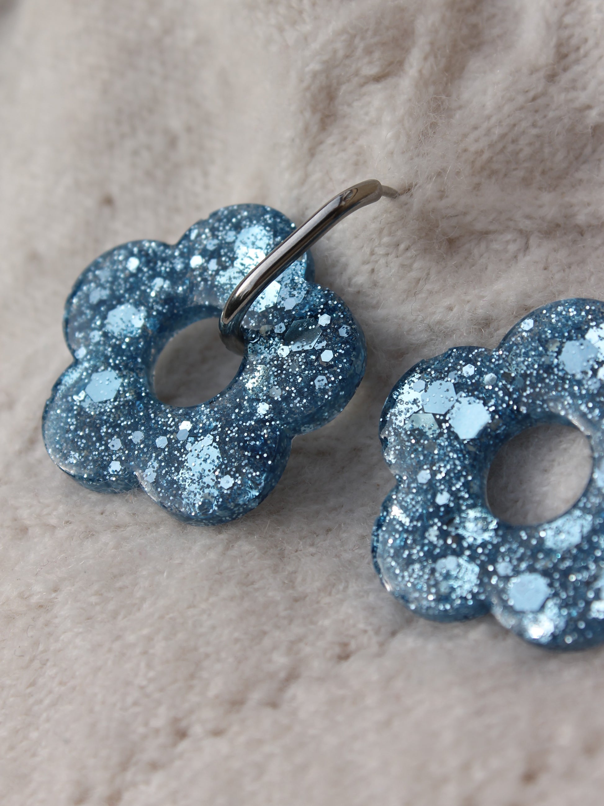 Des créoles fines associées aux pampilles Bloom XL — des fleurs plus grandes et plus affirmées, toujours façonnées à la main.