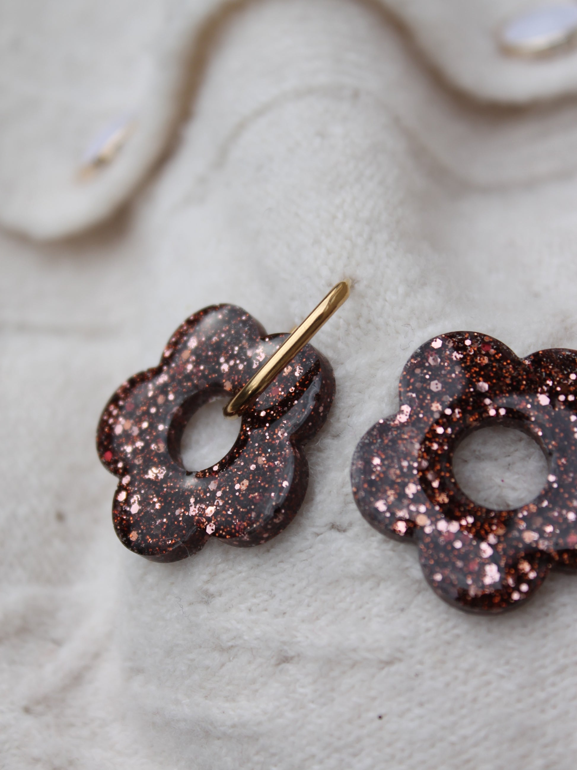 Des créoles fines associées aux pampilles Bloom XL — des fleurs plus grandes et plus affirmées, toujours façonnées à la main.