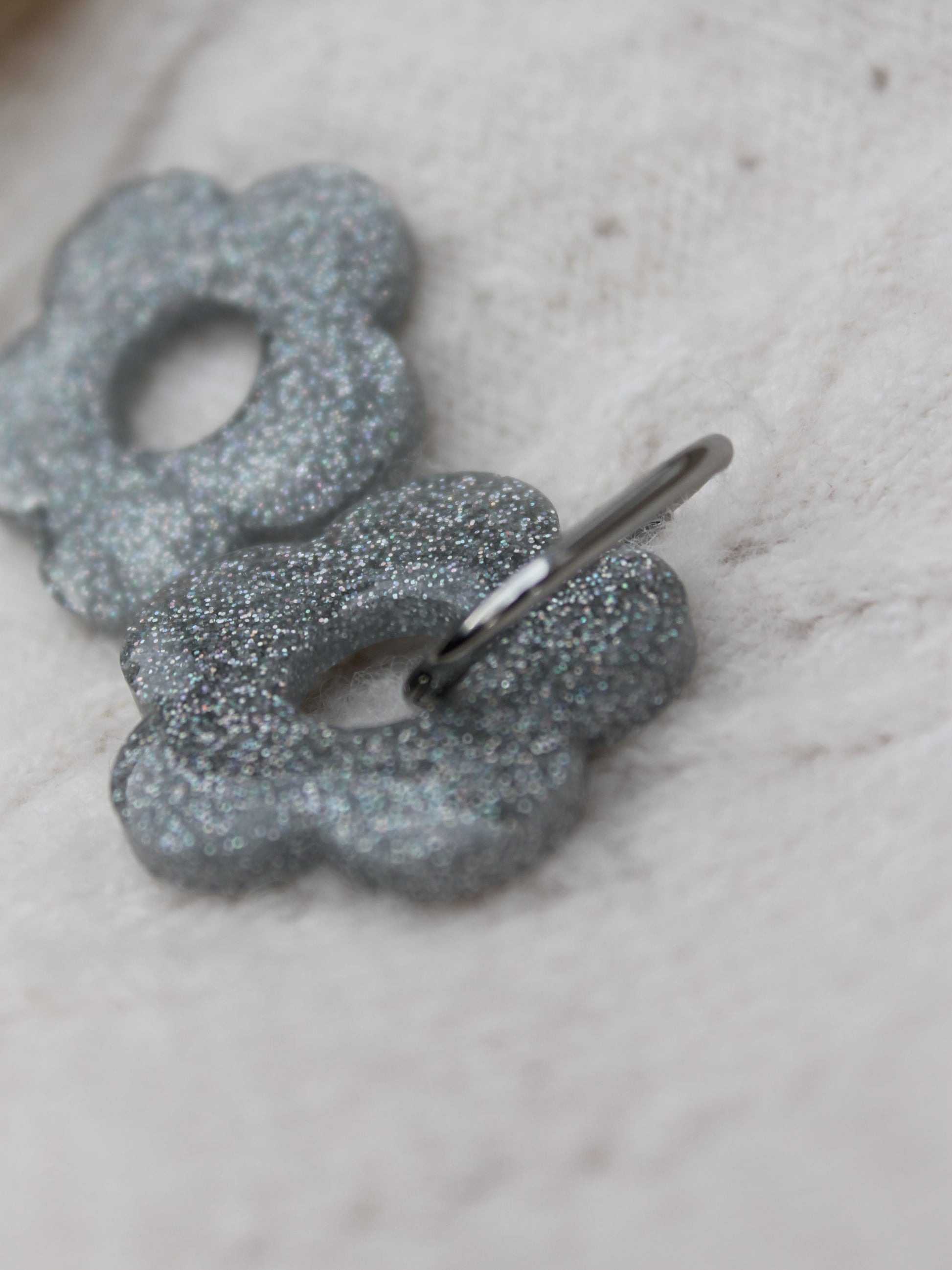 Des créoles fines associées aux pampilles Bloom XL — des fleurs plus grandes et plus affirmées, toujours façonnées à la main.