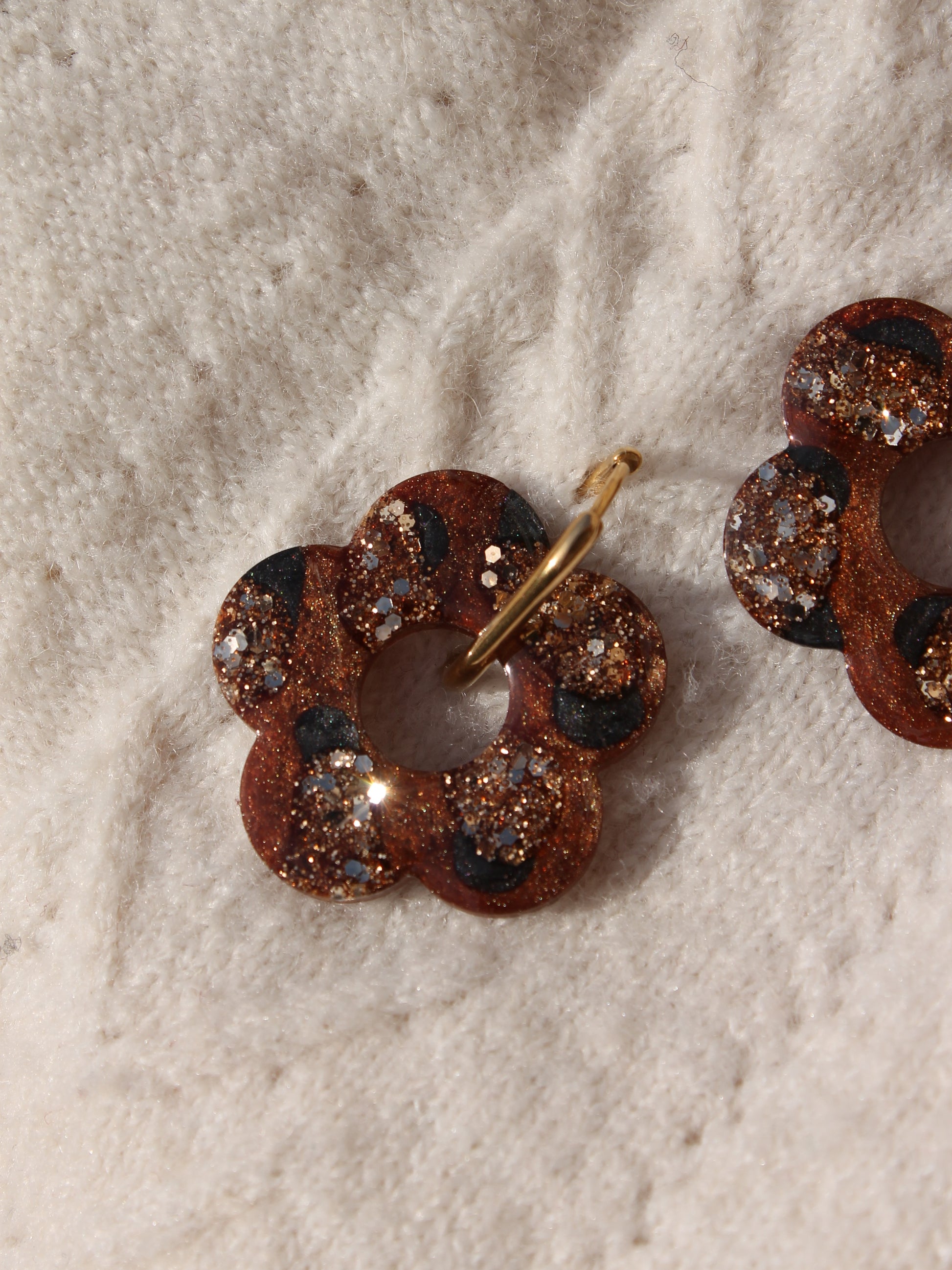 Des créoles fines associées aux pampilles Bloom XL — des fleurs plus grandes et plus affirmées, toujours façonnées à la main.
