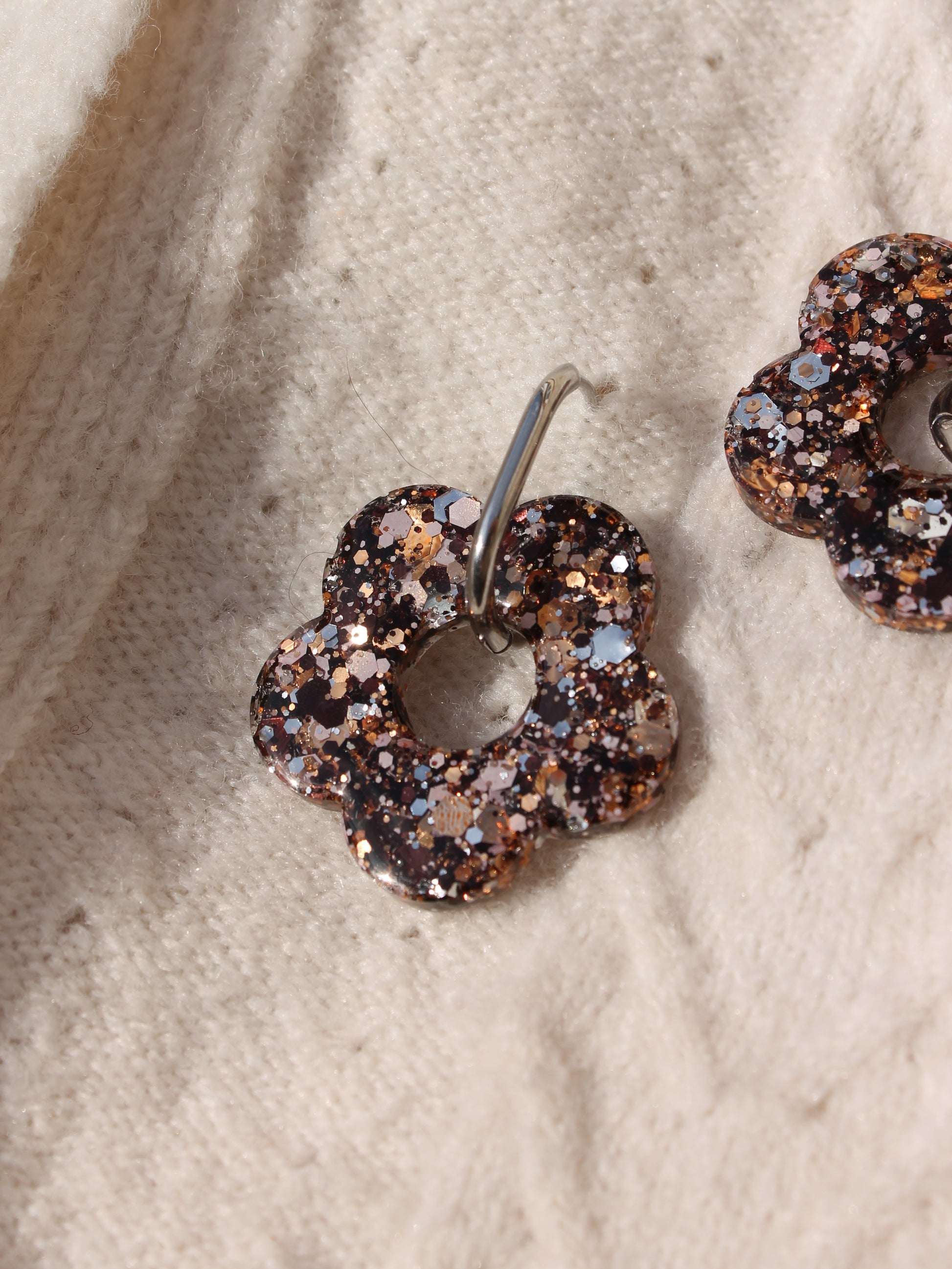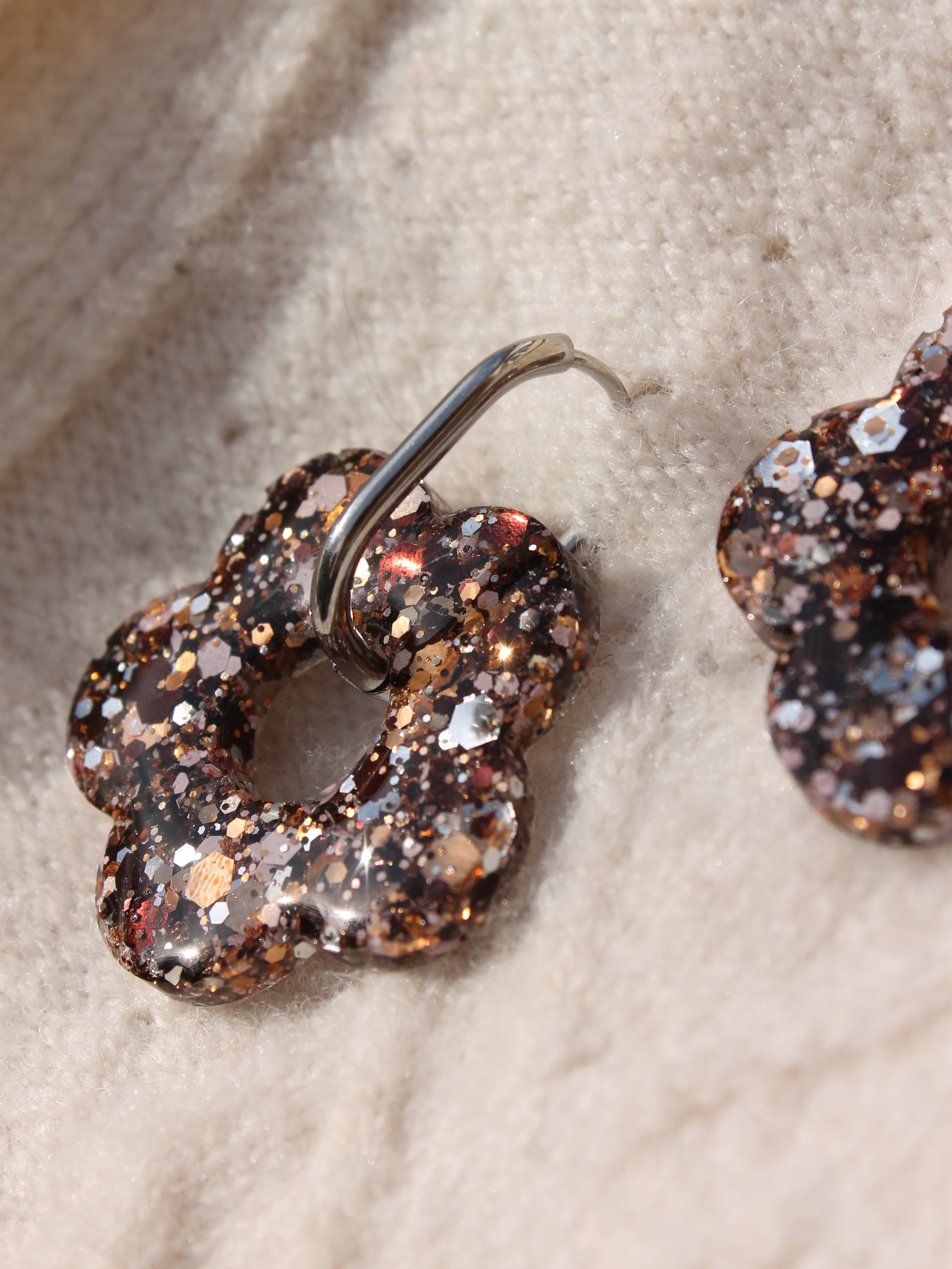 Des créoles fines associées aux pampilles Bloom XL — des fleurs plus grandes et plus affirmées, toujours façonnées à la main.