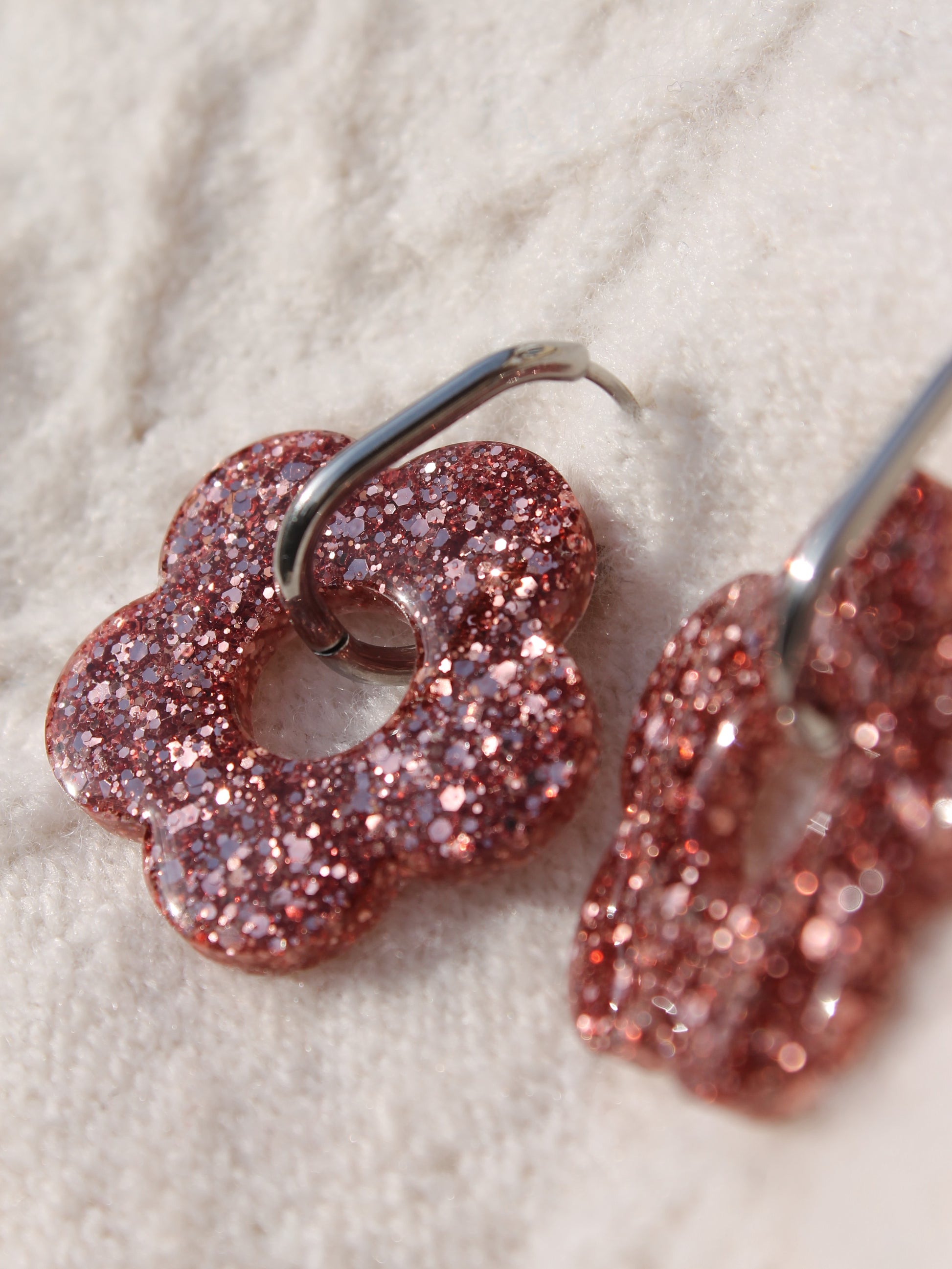 Des créoles fines associées aux pampilles Bloom XL — des fleurs plus grandes et plus affirmées, toujours façonnées à la main.