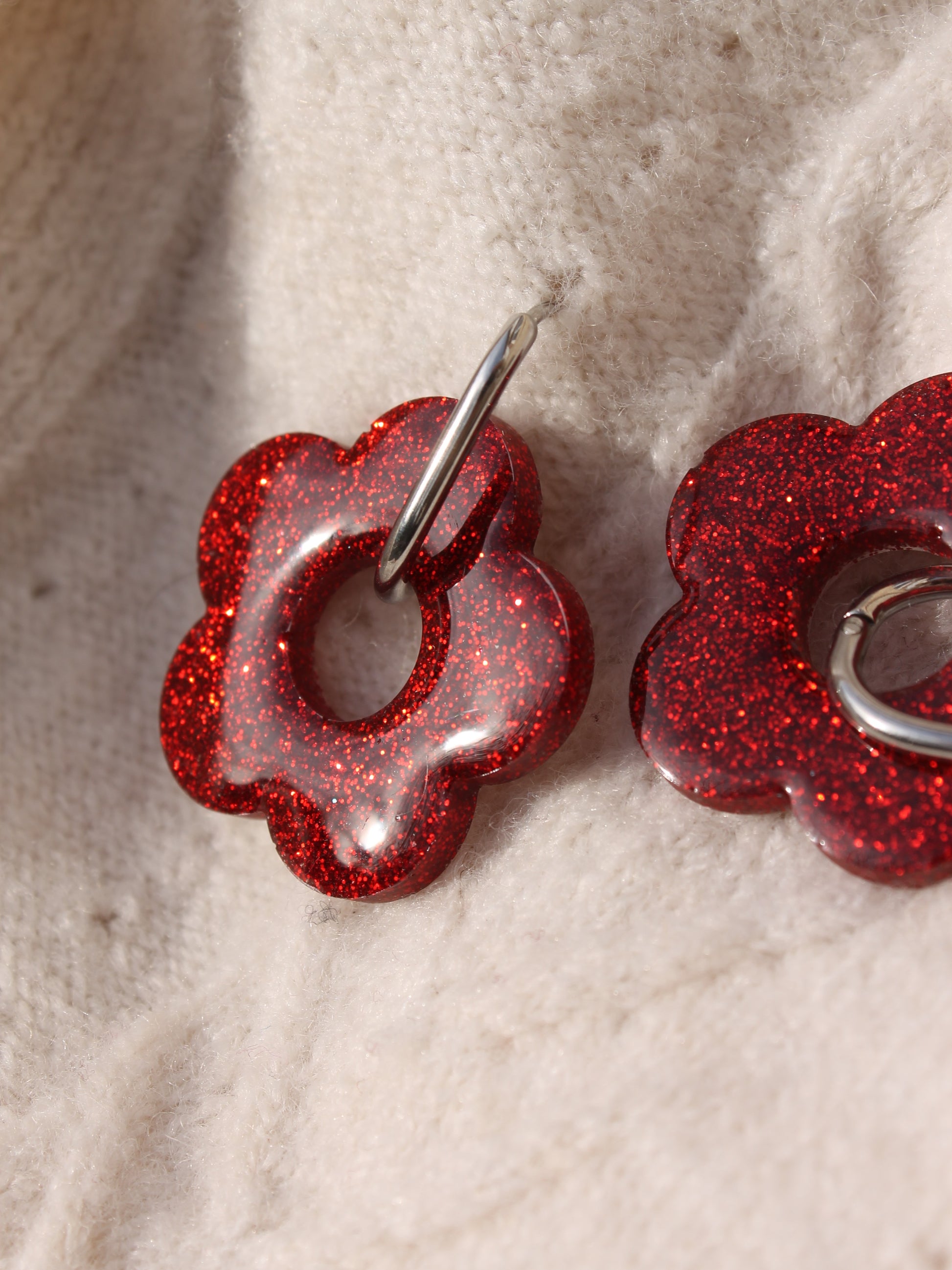 Des créoles fines associées aux pampilles Bloom XL — des fleurs plus grandes et plus affirmées, toujours façonnées à la main.