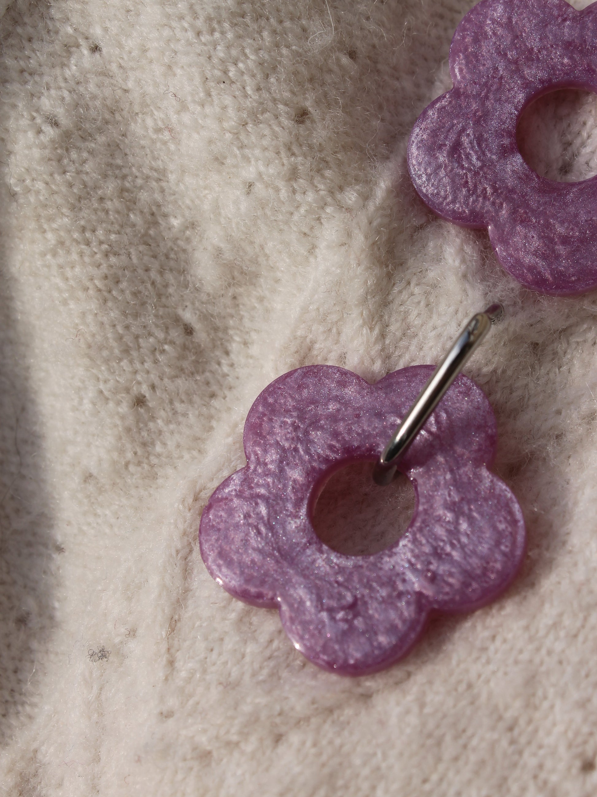 Des créoles fines associées aux pampilles Bloom XL — des fleurs plus grandes et plus affirmées, toujours façonnées à la main.