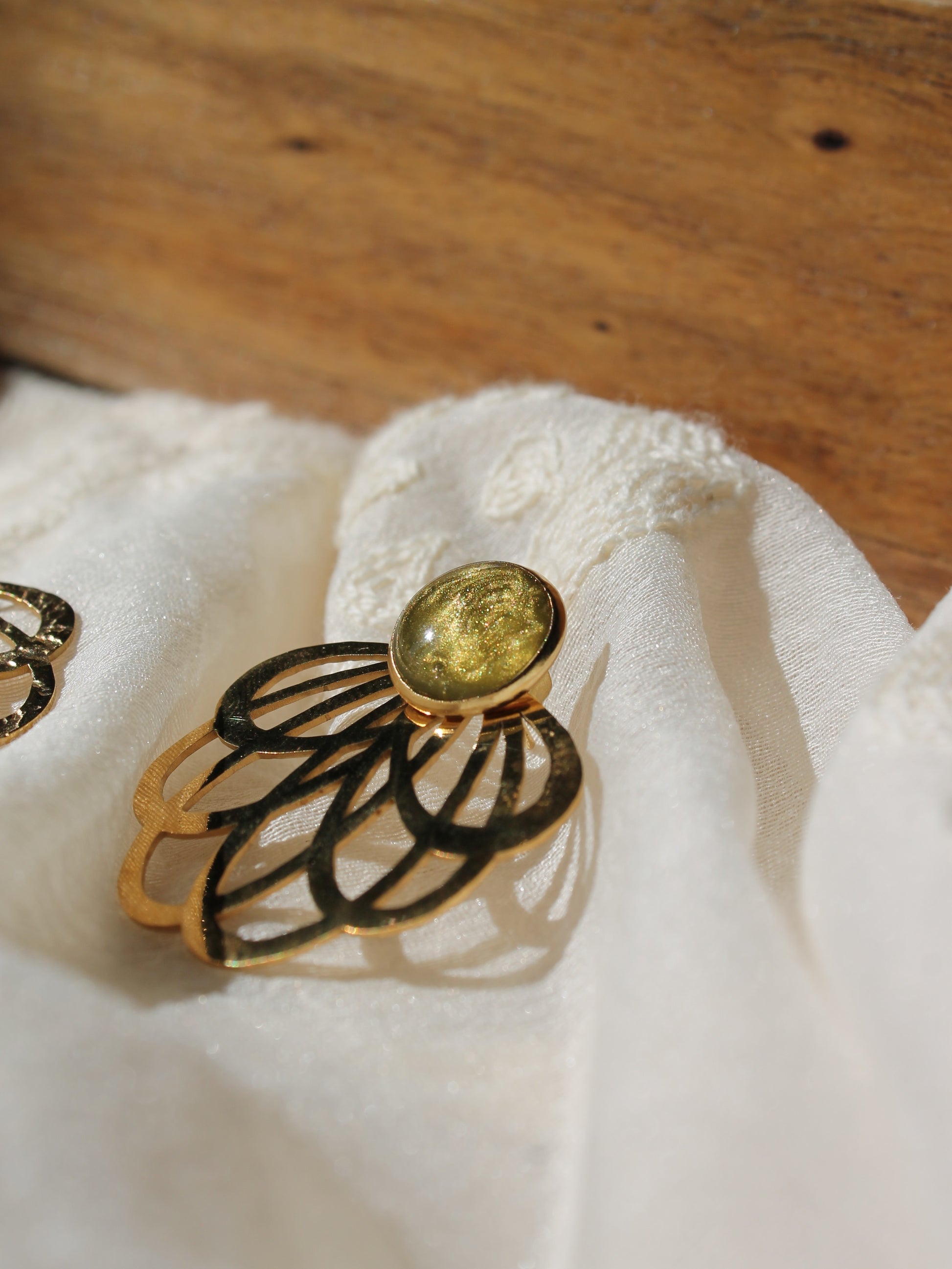 Le modèle Iris, est composé d'un ornement en forme de feuille ajouté, avec un côté martelé et l'autre côté lisse (double possibilité, pour encore plus de possibilités)