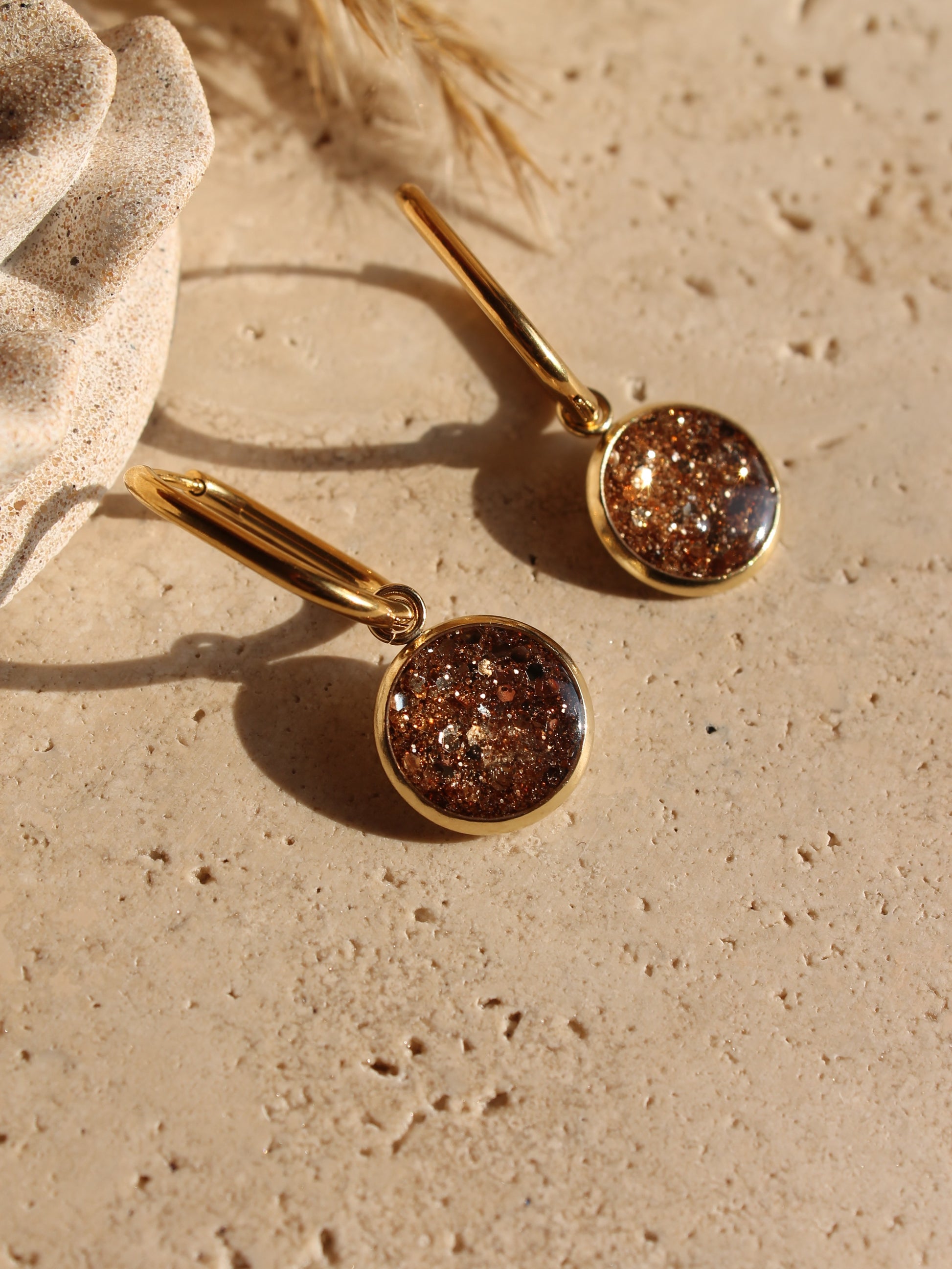 Chaque paire se compose d’une créole ovale élégante et d’un médaillon cabochon rempli de résine colorée ( " capsule " )