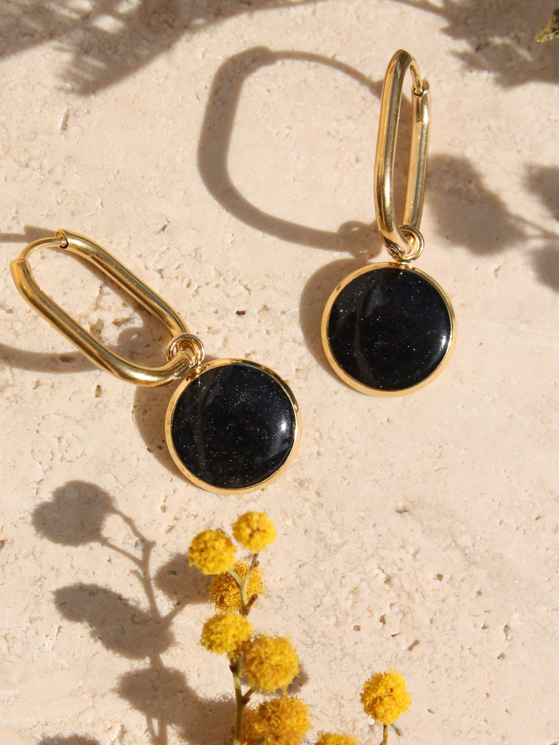 Chaque paire se compose d’une créole ovale élégante et d’un médaillon cabochon rempli de résine colorée ( " capsule " )