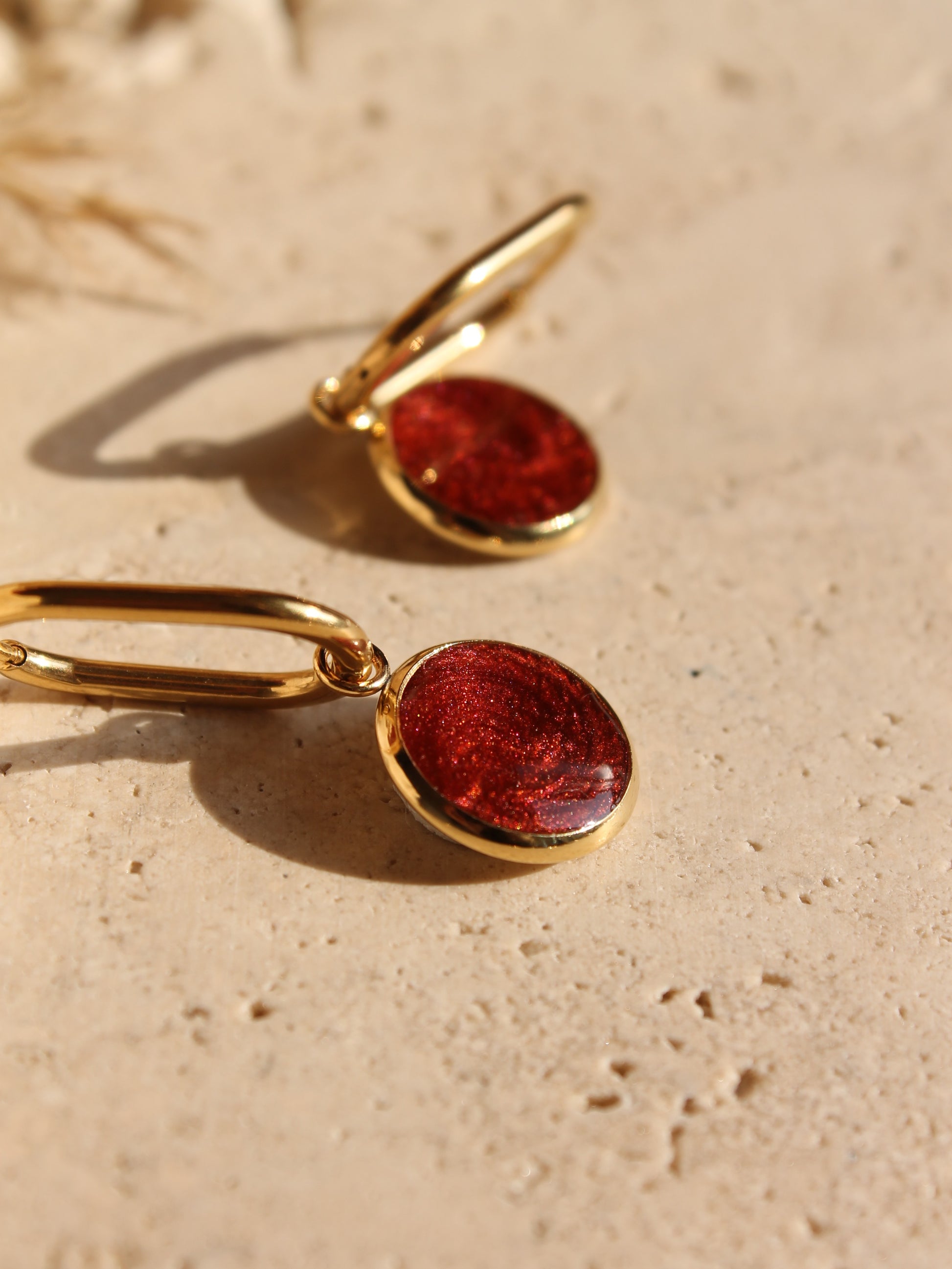 Chaque paire se compose d’une créole ovale élégante et d’un médaillon cabochon rempli de résine colorée ( " capsule " )